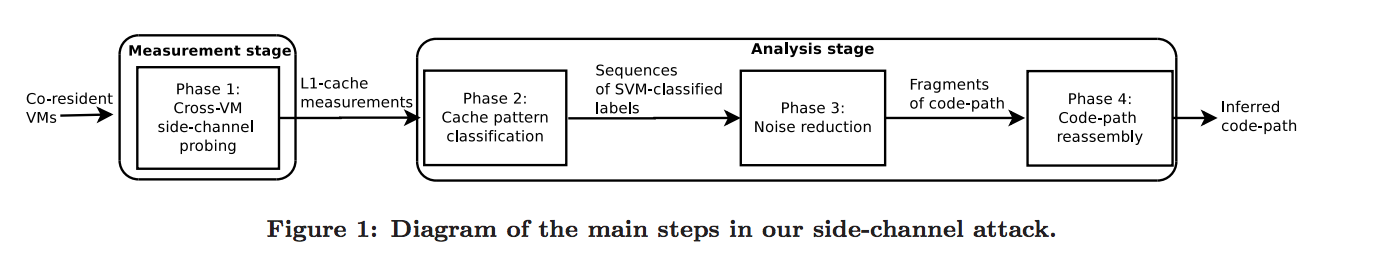 - “Through a novel combination of low-level systems implementation and sophisticated tools such as classifiers (e.g., SVMs and HMMs) and sequence alignment algorithms, we assembled an attack that was sufficiently powerful to extract ElGamal decryption keys from a victim VM in our lab tests.”